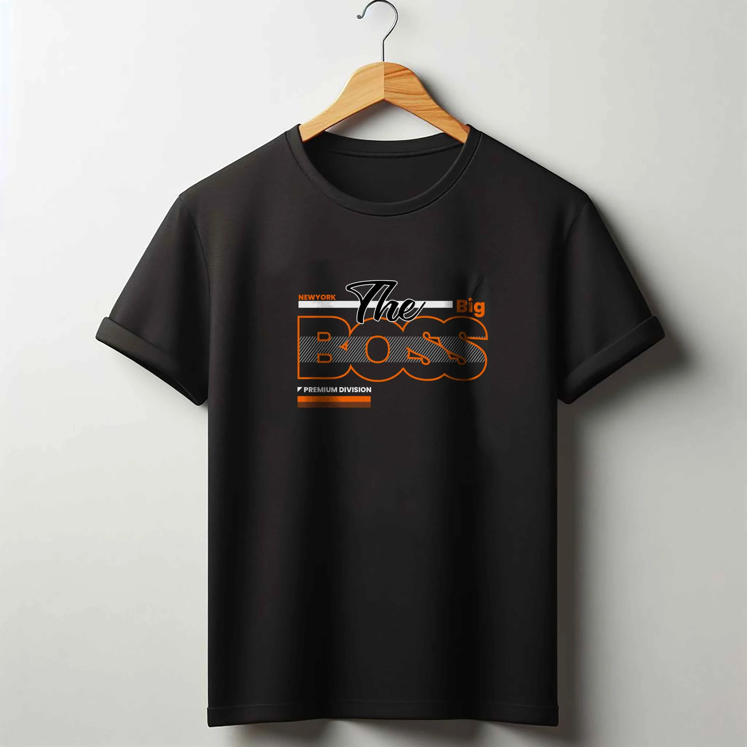 - Black T-shirt Round Neck for Men , Boss Sleeve :Half Sleeve